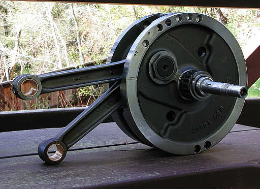 | The Fisher Concepts rebuilt and dynamically-balanced Buell M2 crankshaft. | My Buell S2, after 9 months of toil, weeks before the BRAG CA Adventure trip started. | In-process view of my under deck excavation and initial concrete work. | The underdeck storage area, completed. |